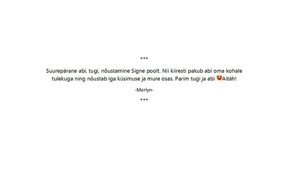 Aitäh, et oled leidnud tee minuni. Olen imetamisnõustaja Signe ja pakun Sulle tuge, nõu ja praktilist abi kui tunned, et: